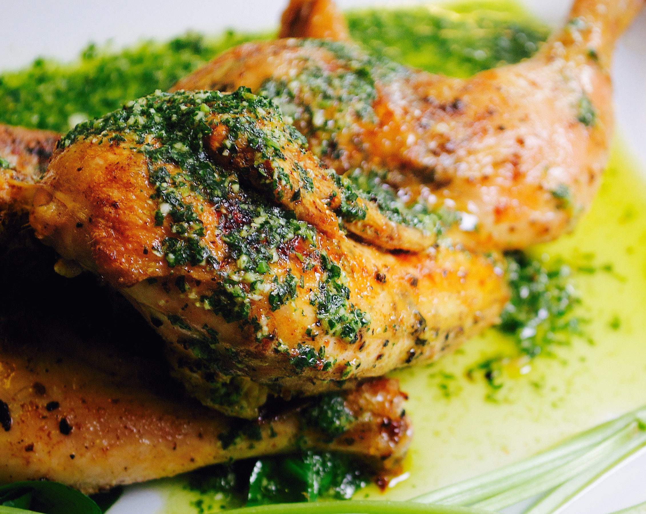 bone-in chicken legs and thighs, marinated in citrus, garlic and fresh herbs