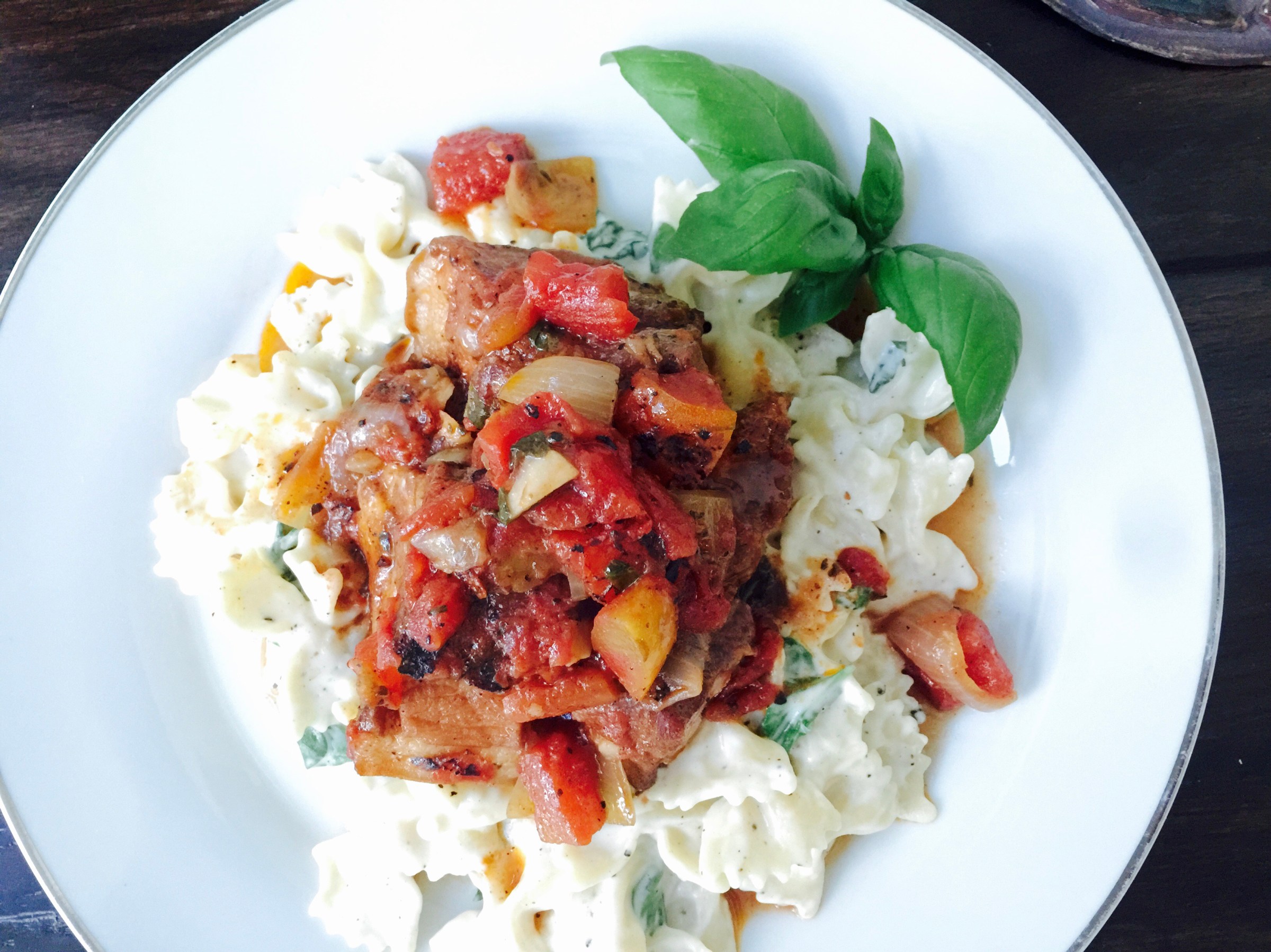 pork shoulder chunks slow-cooked in a blend of bourbon, tomatoes, sweet onion and basil
